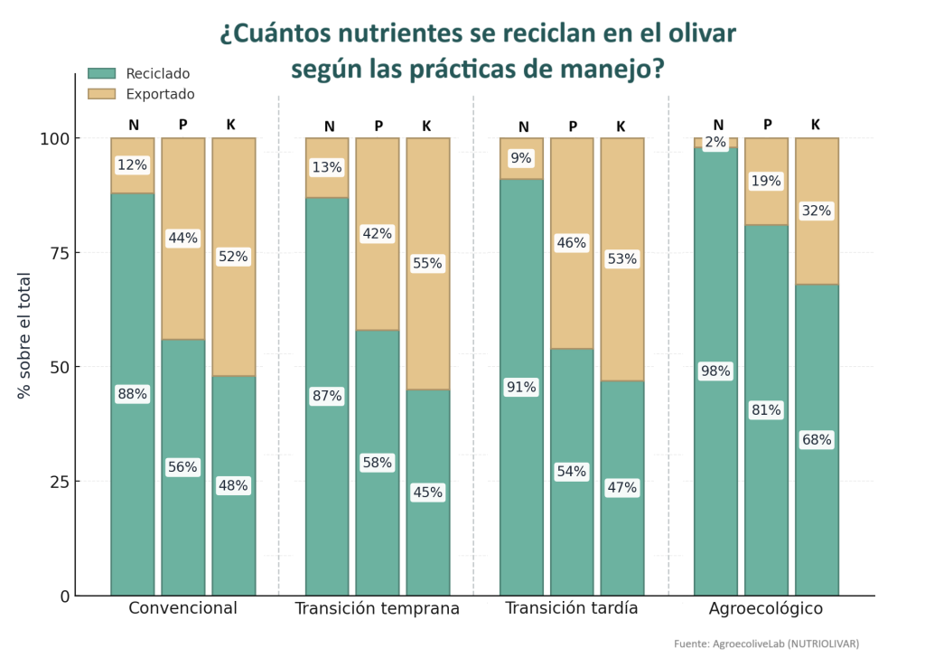 AgroecoliveLab presenta nuevos resultados de NUTRIOLIVAR sobre el impacto de la erosión del suelo en los balances de nutrientes (fósforo, potasio y nitrógeno) en olivares con distintos manejos. El estudio compara los balances calculados sin y con erosión, integrando pérdidas de suelo en función de la cobertura, el laboreo y otras prácticas de manejo.